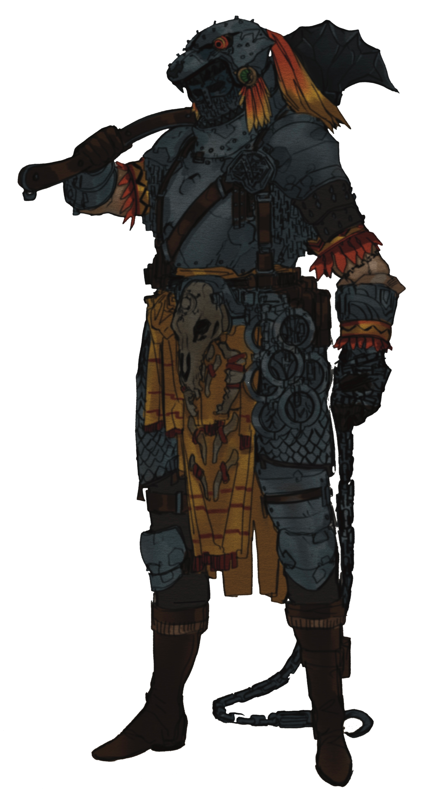 ♦ Generally prefers melee combat, but they are not incapable of striking at a range. Each of them is equipped with a firearm of some description, but it’s a last resort if they can’t close the gap or it’s completely impossible to reach the target.♦ Fond of attrition tactics, will bleed out their targets in hand to hand combat. That’s literal, if they get close and stab someone it’s likely with a serrated blade intended to cause further tearing and internal damage, giving a 25% chance that a T1 harm is upgraded to a T2.♦ The Sworn of Lilith are known for being loyal and honorable warriors. Unfortunately they follow the realistic interpretation of Knights Honor as opposed to what other City States think it is. Which is to say: They’ll honor their deals, respect their Oaths, tell the truth and be very polite to you while holding an axe to your neck. But they’ll also hit you below the belt, punch you in the back of the head, trip you into a pile of rocks,throw dirt in your eyes, and are incredibly fond of poisoning their weapons with venoms designed to make continued fighting agonizing. 50% chance to Inflict 1 stress in addition to whatever damage they deal to an operative.
